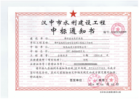 陜西地質(zhì)工程有限公司成功中標(biāo)佛坪縣地質(zhì)災(zāi)害綜合治理工程施工項(xiàng)目