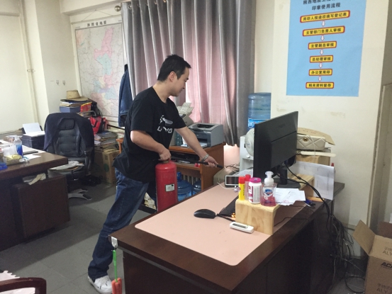 9樓兼職消防員接到公司應急指揮命令后進行初步火災撲救并通知員工疏散。