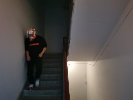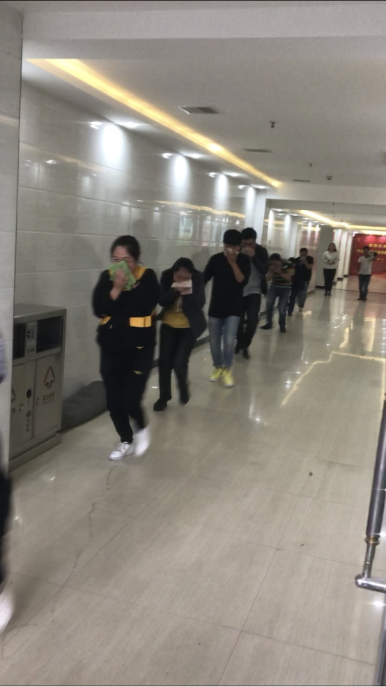 員工佩防火戴安全面罩、濕抹布等快速通過消防疏散通道逃生。